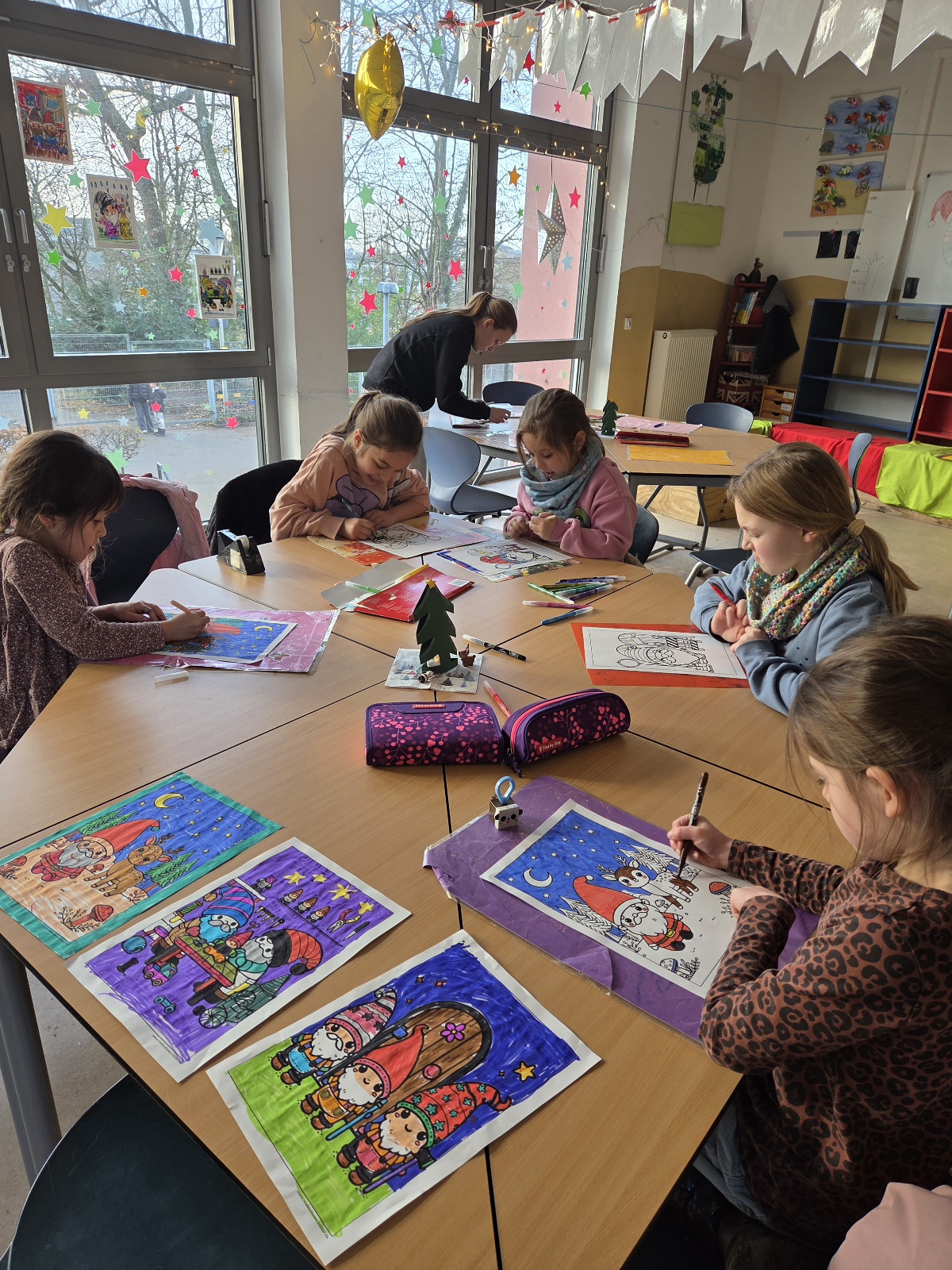 Auch in diesem Jahr treffen sich alle Klassen montags zumAdventssingen im weihnachtlich geschmückten Treppenhaus. Vom Lied „Lebendiger Adventskalender” bis „Fröhliche Weihnacht” klingen die Lieder alle Jahre wieder von so vielen Stimmen gemeinsam gesungen immer wieder am schönsten. Täglich lesen alle Klassen Geschichten und es bekommt ein Kind aus jeder Klasse ein kleines Wichtelgeschenk.An den anstehenden kreativen Tagen wird im Geheimen geschneidert,gehämmert und gebastelt, so dass jedem klar ist: Bis Weihnachtenist´s nicht mehr weit!