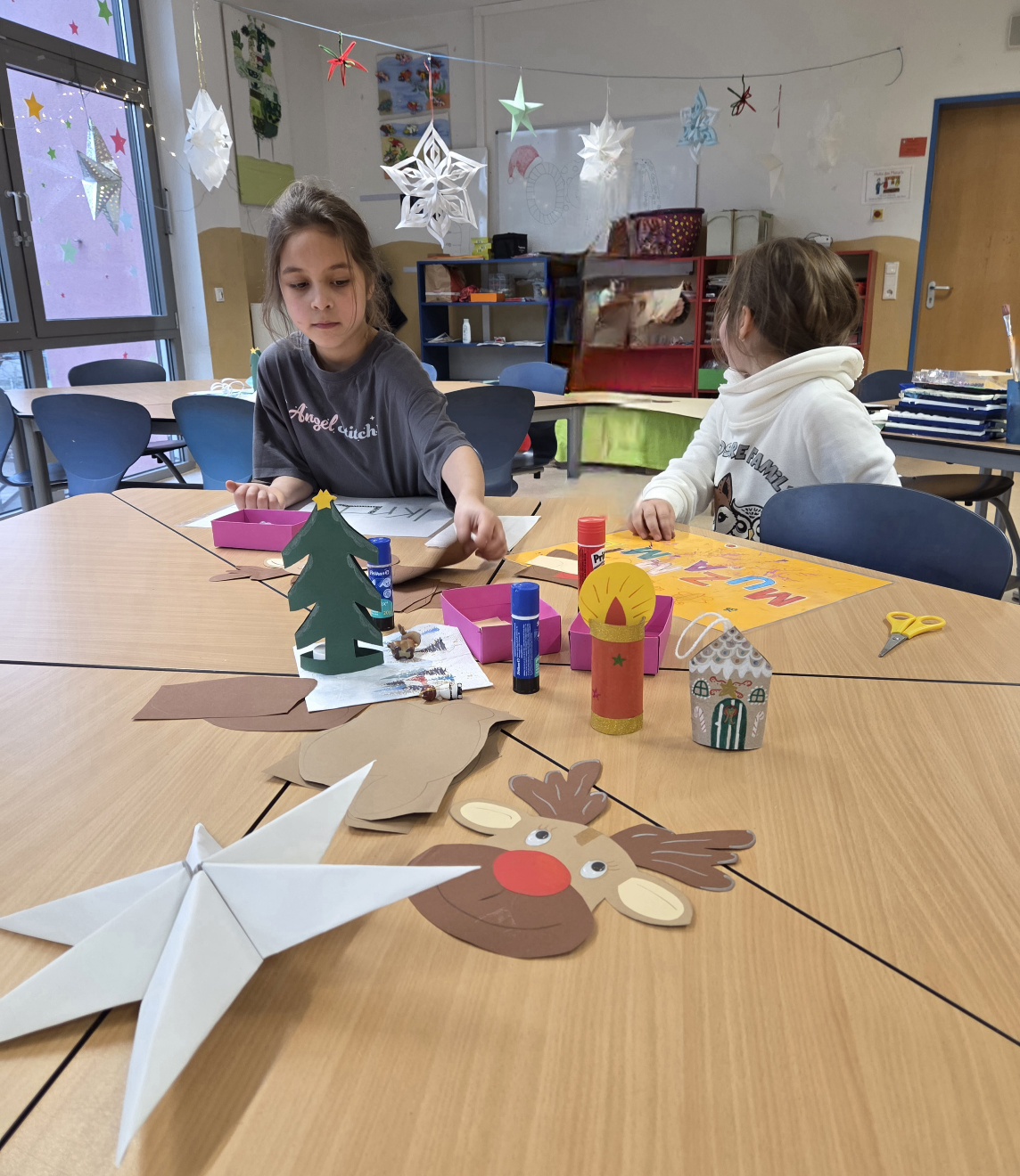 Auch in diesem Jahr treffen sich alle Klassen montags zum Adventssingen im weihnachtlich geschmückten Treppenhaus. Vom Lied „Lebendiger Adventskalender” bis „Fröhliche Weihnacht” klingen die Lieder alle Jahre wieder von so vielen Stimmen gemeinsam gesungen immer wieder am schönsten. Täglich lesen alle Klassen Geschichten und es bekommt ein Kind aus jeder Klasse ein kleines Wichtelgeschenk. An den anstehenden kreativen Tagen wird im Geheimen geschneidert, gehämmert und gebastelt, so dass jedem klar ist: Bis Weihnachten ist´s nicht mehr weit!