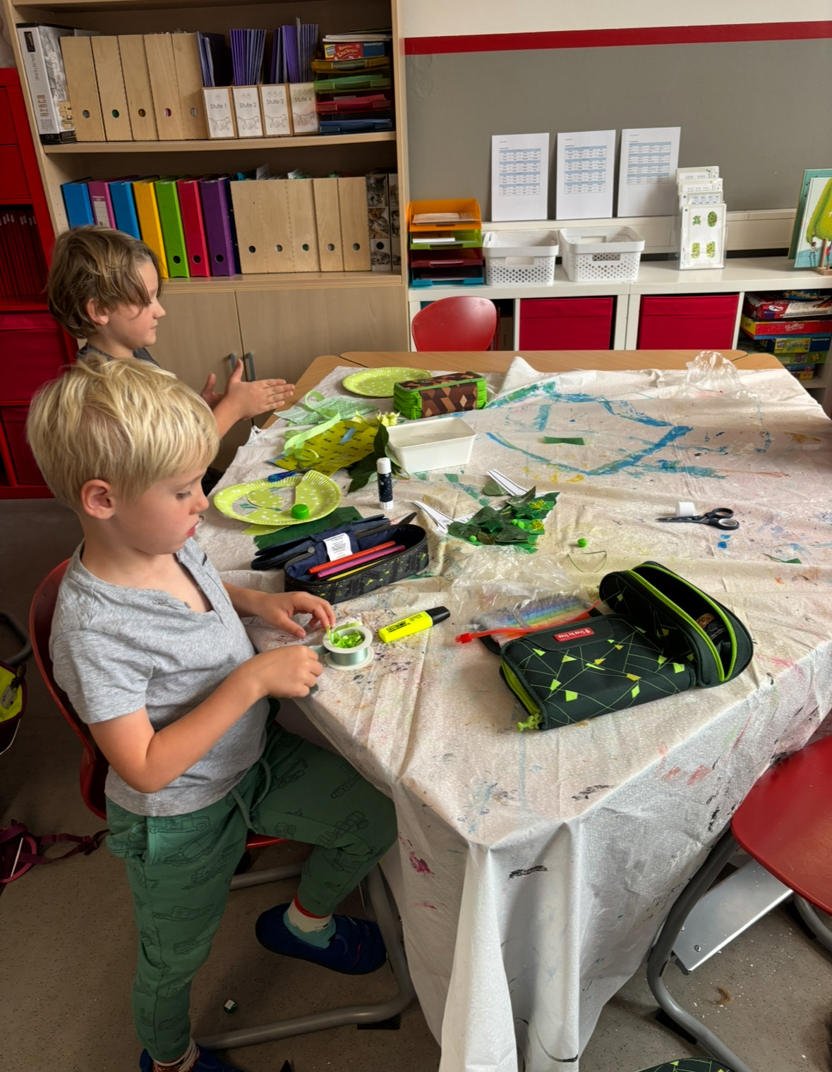 „Das kleine Wir entsteht überall dort wo sich Menschen mögen oder wo Menschen zusammen sind….“ Also auch in der Klasse. Und damit wir immer daran denken, hat das Team Süd beim musisch-kreativen Tag tolle Kunstwerke mit dem grünen „Wir“ gestaltet. Gemeinschaftlich haben die Kinder in den Klassen jeweils ein großes Bild erschaffen. Bei soviel Teamarbeit, fühlt sich das „kleine Wir“ sicher sehr wohl.