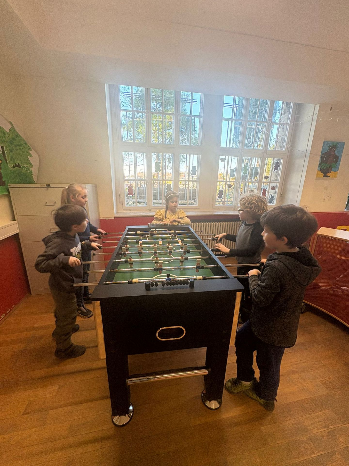 Auch diese Woche hat unser OGATA-Weihnachtswichtel sich wieder einiges einfallen lassen und ist offensichtlich jede Nacht kreativ geworden. Kein Wunder, dass er sich tagsüber nie blicken lässt, wenn er sich so verausgabt, während alle anderen schlafen!Der Wochenbeginn wurde mit Schokoladenlutschern versüßt, die Parki zu Nikolaus für die Kinder mitgebracht hatte.Am Dienstag hat er für regelrechte Verwirrung gesorgt, als er den Eingangsbereich seines Wichtelhauses und die Tische im Speisesaal österlich dekoriert hatte. Ostern im Dezember – zumindest mal etwas ganz anderes!Natürlich hat Parki Ogati den Adventskalender auch wieder mit fantastischen Gaben gefüllt: Kickerbälle, die direkt in einem Turnier auf ihre Matchtauglichkeit überprüft wurden, Straßenmalkreide, die die Kinder für ein weihnachtliches Gemeinschaftskunstwerk verwendet haben, und Soft-Tennis- und Federballspiele für das Außengelände.Die Kinder warteten jeden Tag sehnsüchtig darauf, dass unsere Wichtelwerkstatt öffnet und freuten sich über die verschiedenen Bastel- und Malaktionen. Sicher ist dort schon die eine oder andere Weihnachtsüberraschung entstanden!So ging die nächste Adventswoche schnell vorbei und am Wochenende dürfen wir schon die dritte Kerze anzünden. Am Montag geht es weiter mit unserem Weihnachtwichtel, den wir alle ins Herz geschlossen haben, auch wenn er für ganz schön viel Trubel sorgt…