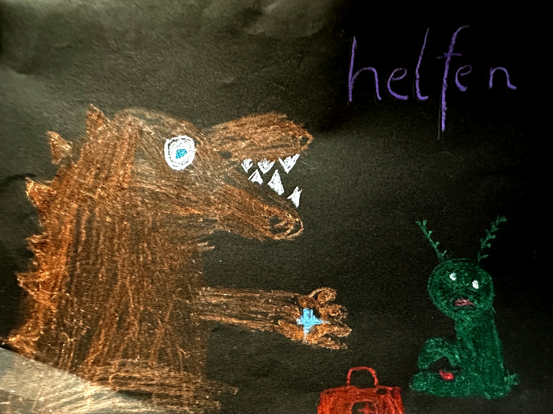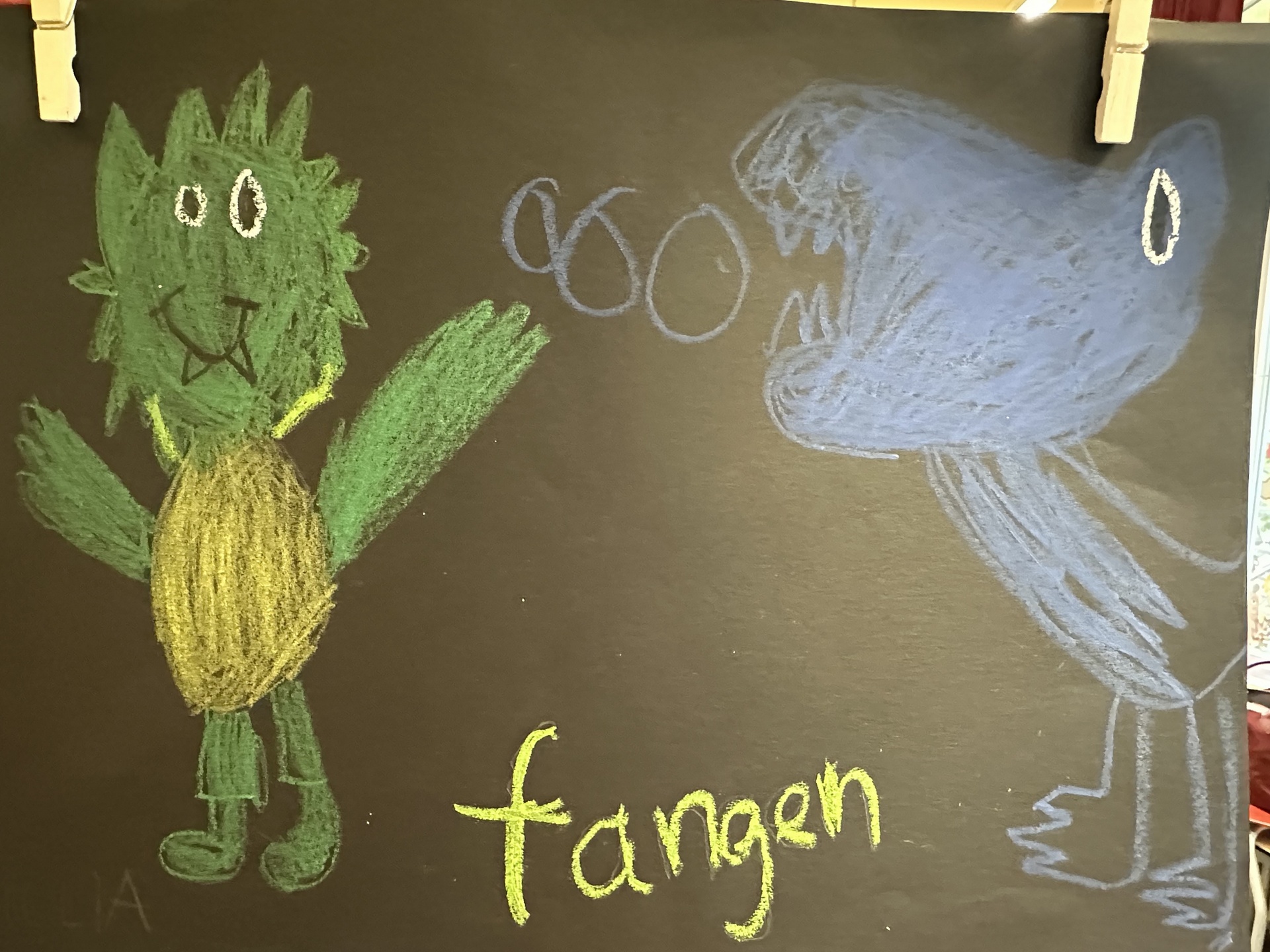 In Anlehnung an unser diesjähriges Bilderbuchprojekt standen auch die musisch kreativen Tage im Zeichen der Freundschaft. Wir haben uns in den vergangenen Wochen viel Gedanken darüber gemacht, was einen guten Freund ausmacht und was wir am liebsten mit unseren Freunden unternehmen. Die kleinen Fantasietierchen von Mies van Hout inspirierten uns, unsere eigenen Ideen umzusetzen mit Wachsmalkreiden und Ölkreiden. Die anschließenden Bildbetrachtungen waren sehr lustig!