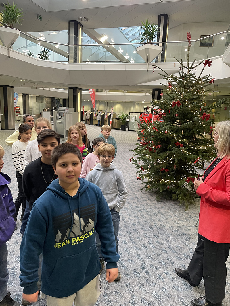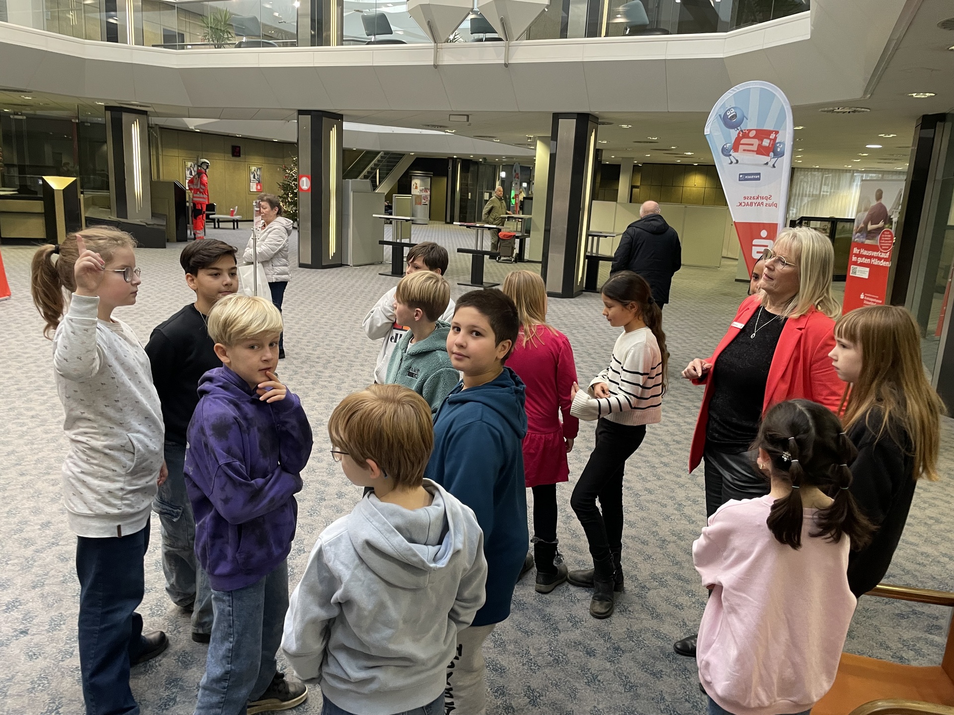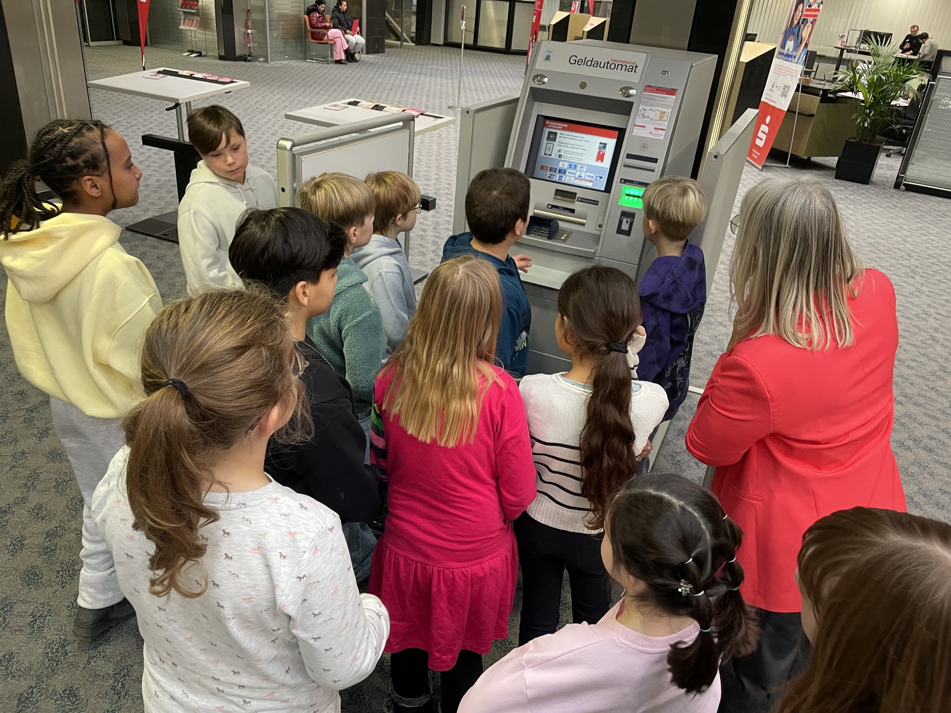 Unser Team Mitte beschäftigt sich zurzeit mit dem Thema Berufe. Am 11.12.2025 hatten wir die Möglichkeit, mit unseren 4ern die Sparkasse zu besuchen. Wir wollten unter anderem wissen, wie Sparen funktioniert, wie ein Tresor aussieht, wie sicher dieser ist und wie der Geldautomat funktioniert. An diesem Tag hatten wir viele neugierige Fragen!