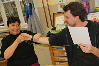 Jahrgänge drei und vier. Nachdem im November viel zu Selbstbehauptung und Konfliktvermeidung gearbeitet wurde, steht nun die körperliche Komponente des Themas im Vordergrund. Hier wird Mut gemacht, auch durch Körpersprache eigene Grenzen deutlich zu machen. Mit den beiden engagierten Trainern werden verschiedene Techniken, um sich Konfliktsituationen entziehen zu können, geübt. Wenn man dabei gleich zwei, oder einen viel stärkeren „Gegner“ loswerden konnte, kann man sicher mit gestärktem Selbstvertrauen auch schwierige Situationen meistern. Dass es hierbei nicht um die Anwendung von Gewalt geht, sondern um Möglichkeiten, Konflikte zu beenden, bevor sie eskalieren, ist dabei allen Beteiligten klar.