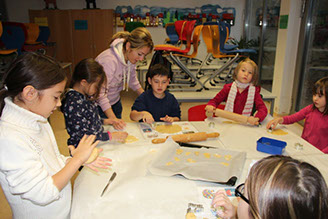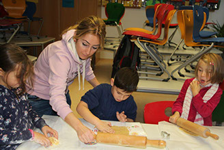Schweinchen als Kuscheltiere werden genäht, es wird gestickt, Kekse werden gebacken. Alle Kinder sind glücklich. Und die Lehrer auch!