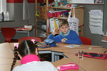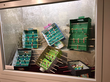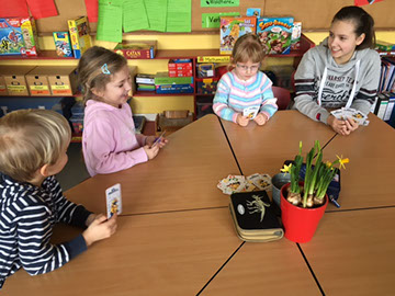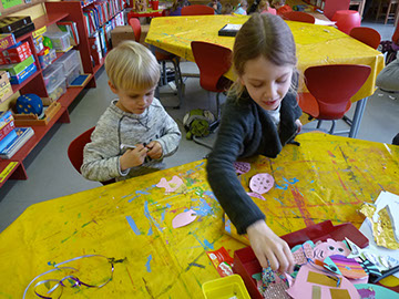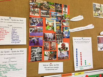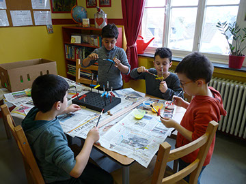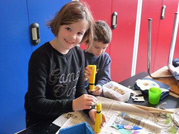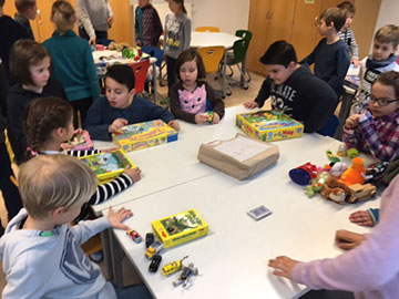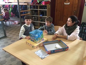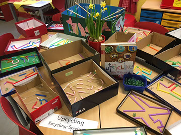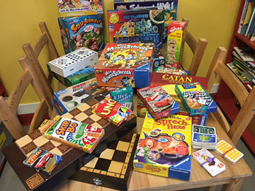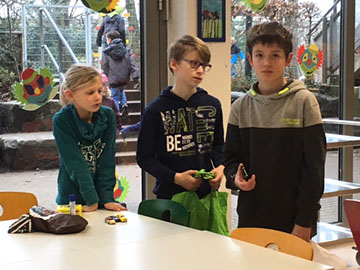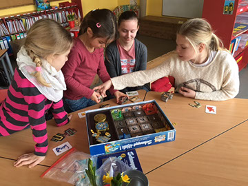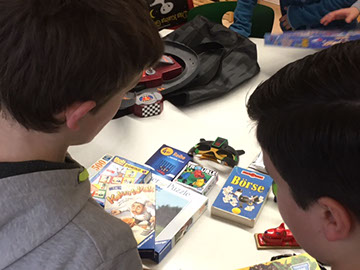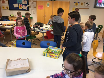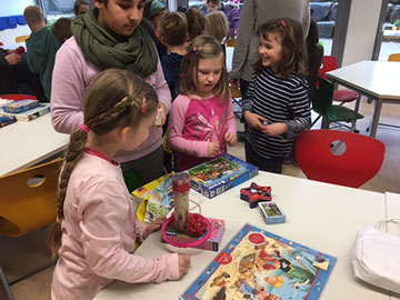 Im Team Nord dreht sich alles um das Spielen! Die 4 Klassen haben sich die Themen Spielwaren in Wülfrath, Spiele früher und heute und Spiele in anderen Ländern untereinander aufgeteilt.Die Igel besuchten das Heimatmuseum in Wülfrath, schauten sich besonders das alte Spielzeug genau an und probierten es aus. Die Hasen und die Löwen beschäftigen sich mit Spielen in anderen Ländern. Hier probierten sie z.B. Spiele aus Peru aus, die wir durch unser Patenkind kennengelernt haben. Die Mäuse haben das Spielzeugangebot in Wülfrath untersucht und durften im Traumland viele Fragen loswerden. Und dann wurde natürlich ohne Ende gespielt ... Brettspiele, Geschicklichkeitsspiele, Kartenspiele, Spiele für draußen, für drinnen... . Außerdem steht bei allen Klassen das Upcyceln auf dem Programm. Es werden selbst Spiele aus Müll hergestellt. In allen Klassen wird kräftig gebastelt an Tischfußballkickern, Puppenhäusern, Memory, Angelspielen und Murmelbahnen. Außerdem wird in vielen jahrgangsgemischten Gruppenarbeiten über Themen wie Das Spiel, Das eigene Spielverhalten, Das Spielzeug im eigenen Kinderzimmer, Aus welchem Material ist mein Spielzeug, Qualitätscheck für gutes Spielzeug oder Die Spielwarenproduktion diskutiert und dazu gearbeitet. Es herrschte Entsetzen über die Arbeitsbedingungen in China! Im Hinblick auf den globalen Gedanken planen die Lerngruppen eine Spielzeugtauschböre für die gesamte Parkschule! Ein Testlauf soll demnächst erst mal im Team stattfinden, damit alles echt gerecht läuft!