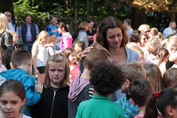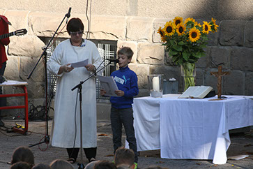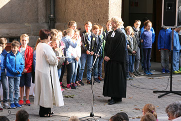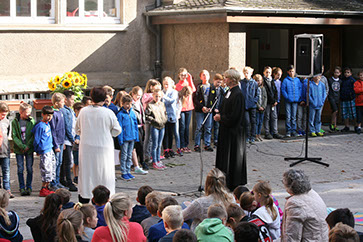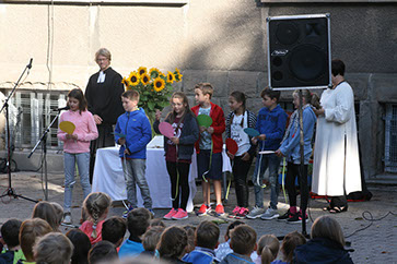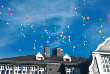 Bei wieder einmal tollem Wetter fand heute der Abschlussgottesdienst der Parkschule auf dem Schulhof statt. Unter dem Motto „Wundertüte – sei selbst das Wunder” wurde ein wunderschöner Gottesdienst mit einem Rückblick auf die letzten vier Jahre, mit tollen Wünschen für die Zukunft, der Idee, dass jeder selbst ein Wunder ist und natürlich dem Segen Gottes für alle, aber besonders für die Vierer, gefeiert. Am Ende wurden diese Wünsche sogar an bunte Ballons gebunden in den Himmel geschickt. Einfach toll!