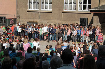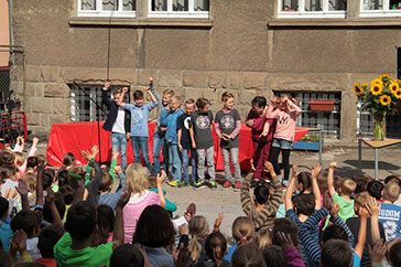 Zum Schuljahresende haben 66 Viertklässler unsere Schule verlassen. Sie wurden mit einem selbst geschriebenen Stück der Theater-AG unter der Leitung von Frau Wolf verabschiedet. Wir wünschen allen Schülerinnen und Schülern einen guten Start an der „neuen“ Schule und freuen uns, wenn sie uns von Zeit zu Zeit besuchen. »» [VIDEO]