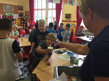 In dieser Woche haben wir schon Besuch von einem Mitarbeiter aus dem Wasser Museum Mülheim bekommen und Herr Kremer hat mit uns Filterexperimente durchgeführt. Das war echt spannend. Wir wetten gegen die Stadtwerke Wülfrath, dass wir Parkschüler es schaffen, in 15 Minuten in jedem Team 100 Liter Wasser mit Schwämmen zu erschwimmen. Drückt uns die Daumen, dass wir die Wette gegen die Stadtwerke gewinnen werden. Eine aufregende Woche ist mitten im Gange – es macht uns allen viel Spaß!