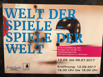 Die Ausstellung Welt der Spiele – Spiele der Welt wird verlängert! Bis zum 1. Oktober besteht weiterhin die Möglichkeit, sich die Ausstellung, die aus unserer Projektwoche zum Thema globales Lernen entstanden ist, im Niederbergischen Museum in Wülfrath anzuschauen!