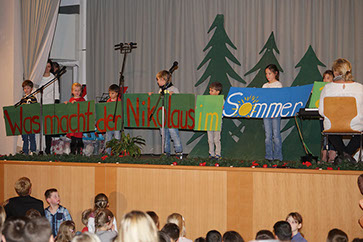 … findet im Paul-Ludowigs-Haus unsere große Weihnachtsfeier statt. Vor ausverkaufter Kulisse sangen und spielten unsere Kinder alte und neue Weihnachtslieder, zeigten ihr schauspielerisches Können bei kleinen Theaterstücken. Dabei half immer wieder das kleine, aber feine Orchester (ehemalige und aktuelle Mütter, Väter, Schülerinnen und Schüler, Lehrkräfte …) unter der Leitung von Karla Schultheiß. Für die ausgeklügelte Technik und Beleuchtung sorgte wieder einmal Frithjof Kuhlmann. Alle großen und kleinen Besucher erfreuten sich an einer ausgewogenen, fröhlichen und harmonischen Veranstaltung. Wir bedanken uns bei allen, die zum tollen Programm oder zum umfangreichen Buffet beigetragen haben oder überall halfen, wo es notwendig war. Vielen Dank!