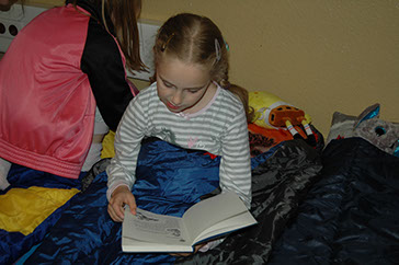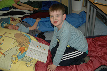 Team Mitte hatte am Donnerstag den 4. Mai die Lesenacht. Alle Kinder der Drachen-, Raben-, Pinguin und Elefantenklasse sicherten sich schnell die besten Plätze für ihre Matratzen und Schlafsäcke. Nachdem jeder einen Platz in der leergeräumten Klasse gefunden hatte, kuschelten sich alle Kinder in die Schlafsäcke und schnappten sich ihr Buch und Taschenlampe. Entweder lasen sie alleine, zu mehreren oder die Größeren und die Lehrer lasen den kleineren Kindern ein Buch vor. Um Mitternacht gingen die letzten Taschenlampen aus. Teilweise mussten sogar andere Kinder die Taschenlampen von ihren Mitschülern ausschalten, die über ihren Büchern eingeschlafen waren. Morgens knipsten schon um kurz nach sechs die ersten ihre Lampen wieder an, um weiterzulesen.