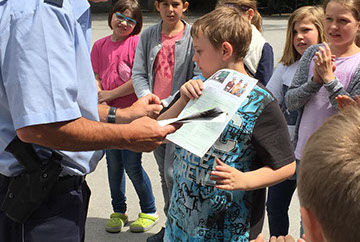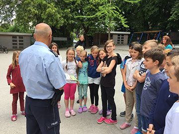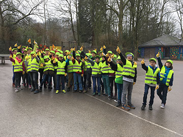 Wie jedes Jahr wurden wieder alle Schulneulinge mit einer Warnweste versorgt. Wenn bald die dunkle Jahreszeit beginnt, sorgt die leuchtend gelbe Weste dafür, dass unsere Jüngsten im Straßenverkehr gut gesehen werden. Mit Daumen nach oben haben alle Kinder gezeigt, dass sie die Weste fleißig tragen wollen – klasse!