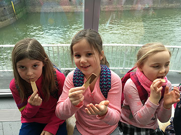 Schon der Start in die Projektwoche war ein voller Erfolg für die Kinder im Team Süd. Bereits am Freitag ging es los Richtung Köln. Dort besuchten wir das Schokoladenmuseum und erfuhren, wie Schokolade hergestellt wird. Wir haben in einem Stück Regenwald echte Kakaobäume gesehen und das Klima des Regenwaldes gespürt. Beim Versuch, dort Kniebeugen oder Liegestütz zu machen, merkten wir schnell, dass es gar nicht so leicht ist, sich bei dieser Wärme anzustrengen. Da fragte sich schon der ein oder andere, wie es den Arbeitern auf einer Kakaoplantage so gehen mag. Der Weg der Kakaobohne wurde uns genau erklärt und wir haben die verschiedenen Produktionsschritte gesehen und konnten z.B. Kakaobohnen und Kakaobutter probieren. Kaum zu glauben, dass daraus unsere leckere Schokolade hergestellt wird! Durch Filme und anderes Infomaterial haben wir dann aber herausbekommen, dass auf den Kakaoplantagen nicht nur Erwachsene, sondern häufig auch Kinder arbeiten. Sie sind teilweise nicht älter als die Parkschulkinder und arbeiten viele Stunden am Tag. Dafür bekommen sie kein oder nur sehr