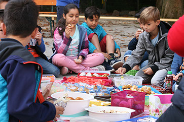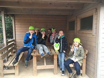 ... dann lacht die Sonne vom Himmel! Mit ganz viel Sonne im Gepäck verbrachten die Hasen, Igel, Löwen und Mäuse 2 tolle Tage und Nächte in der Jugendherberge in Essen Werden! Dank des super Wettters konnten wir ohne Ende draußen spielen. Fußball, Baumhäuser bauen, Federball, Gummitwist, Tischtennis, Vorlesen ein toller Ausflug zum Spielplatz auf der Breminsel (die Seilbahn war der Hit), Eis essen, Würstchen grillen, eine Taschenlampendisco und unendlich viele Gemeinschaftsspiele standen auf dem Programm. Die Mitarbeiter der Jungendherberge haben das Verhalten unser 98 Kinder sehr gelobt! Und das haben sie sich auch verdient! Ihr wart super! Ein großer Dank gilt auch Frau Kommnick, Frau Keitel und Herrn Milotta, die vor allem die Löwenklasse und das Klassenlehrerteam im Team Nord tatkräftig unterstützt haben! Vielen Dank!