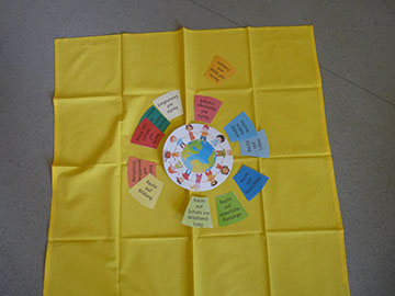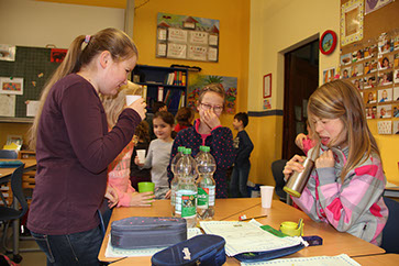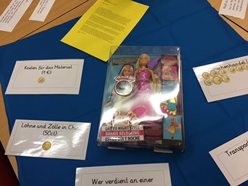 Spielzeuge wurden ausprobiert, Schokolade probiert, Regentonnen bestaunt, Filme geguckt und genauestens informiert über den Wasserverbrauch oder die Arbeitsbedingungen chinesischer Fabrikarbeiter in der Spielwarenproduktion und über die Kinderarbeit in der Schokoladenherstellung. Viele Eltern berichteten wie sehr ihre Kinder sich auch noch zu Hause mit den Themen beschäftigt und auseinandergesetzt haben. Die Elternpflegschaft unterstützte den Nachmittag mit Getränken und einer Cafeteria.