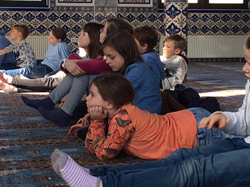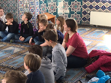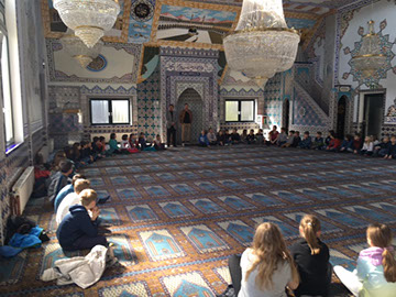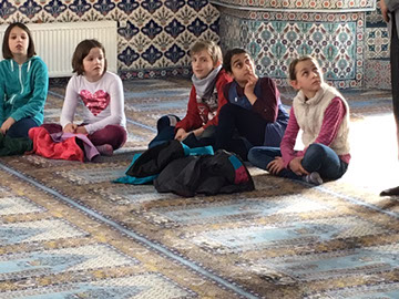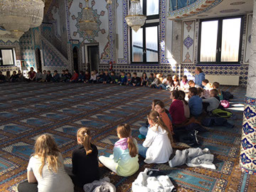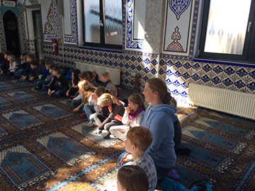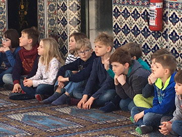 Heute machten sich alle evangelischen Kinder der Stufen 3 und 4 auf zur Moschee in Wülfrath. Nachdem alles ihre Schuhe ausgezogen haben, wurden der kostbare Kristallleuchter, die Kuppel, der riesengroße Teppich sowie die Wandmalereien bestaunt. Herr Kahramann empfing die Kollegen und Kinder und berichtete von der Entstehung des islamischen Vereins in Wülfrath und den Glaubensregeln im Islam. Anschließend beantwortete er geduldig alle Fragen der Kinder, die einfach nicht aufhören wollten... . Die Zeit verging wie im Flug und der Besuch wurde am Ende durch ein süßes Geschenk versüßt! Herzlichen Dank an dieser Stelle an Herrn Kahramann und sein Team sagen alle Kinder und Lehrer