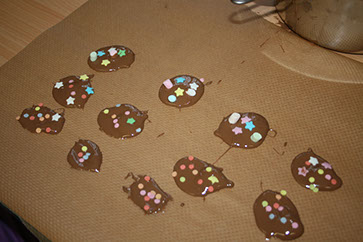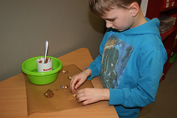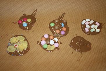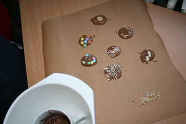 etwas, wenn ganz viele Menschen nachdenklich werden und bereit sind, ein bisschen mitzuhelfen! Trotz aller Empörung hatten wir aber auch ganz viel Spaß. Wir haben eigene Schokoladenkreationen hergestellt, ganz viel Schokolade gegessen, Schokoladenbilder gemalt und ein Schokoladenwettessen veranstaltet. Es gab eine Fantasiereise und andere Geschichten mit und über Schokolade. Auch ein Schokoladenfondue durfte nicht fehlen und den Schokoladenrap mit Omas Schublade kann nun wirklich