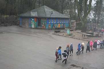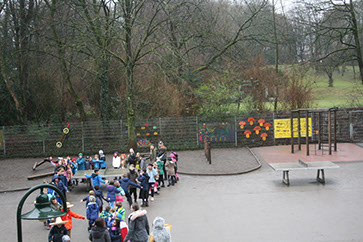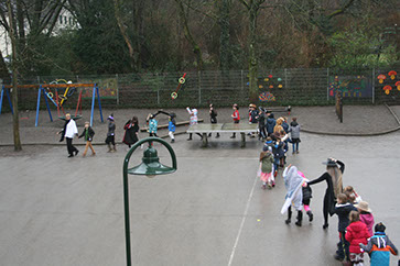 Man kann ab 15:15 Uhr auf dem Schulhof oder sonst in umliegenden Straßen parken.