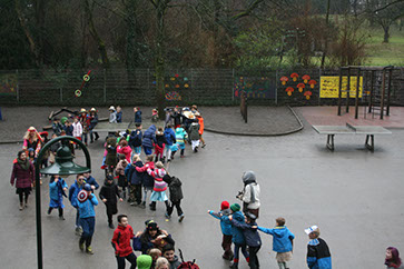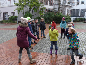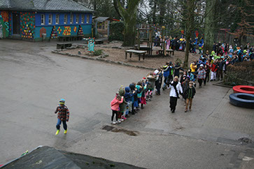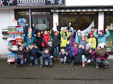 Mit dem Lied „Alle Kinder dieser Erde“ begrüßten die Löwen, Mäuse, Igel und Hasen heute ihre Ausstellung mit dem Thema „Welt der Spiele - Spiele der Welt“ im Niederbergischen Heimatmuseum Wülfrath. Im Rahmen einer Projektwoche beschäftigten sich alle Schülerinnen und Schüler mit Spielzeug früher und heute, Spielen aus anderen Ländern usw. usw. Unter anderem wurde auch aus Müll neues Spielzeug hergestellt. Das Niederbergische Heimatmuseum unterstützte netterweise die Absicht der Kinder und Lehrer alle Arbeitsergebnisse einer noch größeren Öffentlichkeit zugänglich machen zu können und stellte spontan passende Räume zur Verfügung. Ein weiterer, wichtiger Schritt zur Nachhaltigkeit des Projektthemas! Vielen Dank!