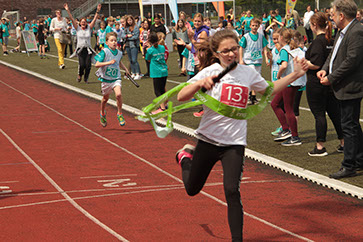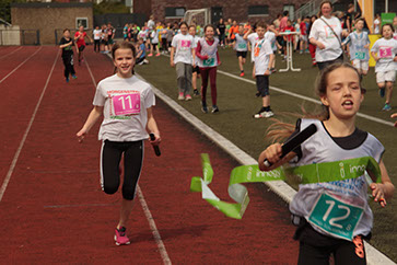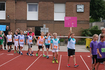 denn auch in diesem Jahr überzeugten alle drei gemeldeten Staffeln der Parkschule beim Schulstaffellauf 2017 über 8x100 Meter. Am Morgen herrschte zwar bei den Jungen und Mädchen gleichermaßen noch große Aufregung, aber die legte sich auf der Sportanlage des Heinrich-Heine-Gymnasiums in Mettmann schnell. Frau Komnick und Frau Sträßer hatten die Kinder toll vorbereitet (Vielen Dank dafür!) und sie konzentrierten sich sowohl auf ihren Lauf, als auch auf die Staffelübergabe. Alle drei Staffeln gewannen ihre jeweiligen Rennen! Eine tolle Leistung! Eine ganz besondere Leistung zeigte die Staffel 2: Mit einer Zeit von 02:06,08 qualifizierte sie sich vor allen anderen Staffeln aus den Städten Wülfrath, Ratingen, Heiligenhaus, Velbert, Erkrath, Langenfeld und Mettmann mit dem 1. Platz direkt für die Abschlussveranstaltung am 11. Juli in Rheine.
