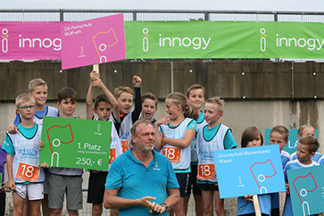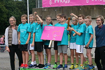 Das Schulstaffelteam der Parkschule (unter der Leitung von Frau Kommnick und Frau Sträßer) hatte in diesem Jahr eine weite Anreise. Das Finale der Innogy-Schulstaffelläufe mit Willi Wülbeck fand in diesem Jahr in Rheine statt. Hier gab unser Team richtig Gas und holte den goldenen Pokal mit der hervorragenden Zeit von 2.06,2 Min.! Ein riesen Erfolg!