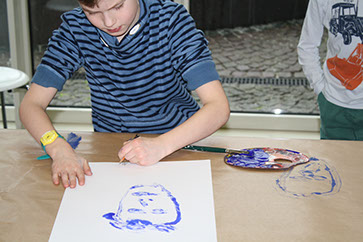 schauten ganz schön grimmig drein. Das konnte den Hunden aber nicht die Laune verderben! Im Workshop nach dem Besuch der Ausstellung wurden mit Feuereifer gleich auf zwei verschiedene Arten Portraits gemalt. Dabei sind tolle Bilder entstanden und das Malen hat allen sehr viel Spaß gemacht.