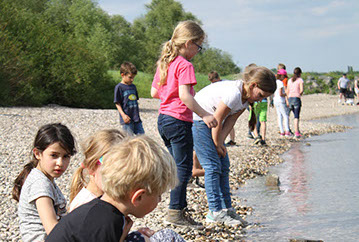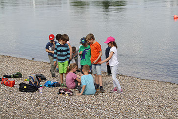 Es wurde Speedstacking trainiert, mit der Laubsäge gearbeitet, mit Wolle gewerkelt und gemalt und natürlich auch geschnitzt. Einen selbstgemachten Kühlschrankmagneten oder ein lustiges Sockenmonster haben viele mit nach Hause genommen. Alle zusammen haben ein Puzzle mit 1000 Teilen zusammengepuzzelt – und das in nur einer Stunde! Beim Ausflug zum Rhein kam noch einmal richtige Urlaubsstimmung auf. Da fühlten sich einige wie am Meer. Schließlich konnte man ja sogar Muscheln sammeln und ein Kuchen-Picknick gab es auch. Und wer dachte, dass noch so viel Bewegung alle müde sein müssen, der hat sich getäuscht! Nach dem gemeinsamen Grillen ging es gleich wieder los. Kletterturm und Rutsche und besonders die lange Reihe von Kletterbäumen mussten ja auch noch genutzt werden.