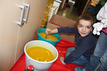 So lautet der Titel der Projektwoche, die gerade in der Parkschule läuft. Jedes Team beschäftigt sich unter diesem Oberthema mit einem anderen Schwerpunkt. Im Team Nord geht es um Spiele und Spielzeuge, während das Team Mitte rund um das Thema Wasser aktiv ist. Lecker geht es im Team Süd zu, denn dort dreht sich alles um Schokolade.