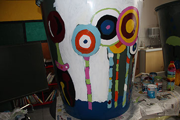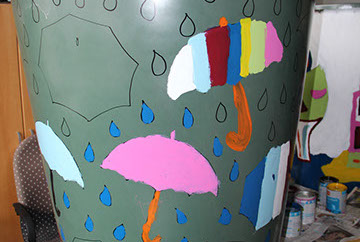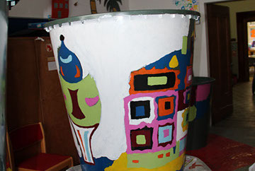 Wir wollen direkt mit Wasser sparen anfangen und bemalen Regentonnen, die im Schulgarten aufgestellt werden, so dass wir das Wasser zum Blumen gießen nutzen können. Im Sommer wollen wir das Wasser in den neugebauten Wasserbahnen nutzen. Toll, die Stadtwerke Wülfrath haben uns die Regentonnen besorgt und gesponsert. Lieben DANK Herr Dorando und Frau Sulewski!
