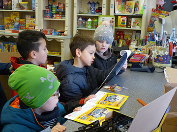Anlässlich der Nacht der Museen im Kreis Mettmann präsentierten Parkschüler nochmals die Ausstellung Welt der Spiele – Spiele der Welt. Anton, Levin, Darek, Aron, Mika, Marleen, Lasse, Simon und Maximilian standen als Experten zum Thema Globales Lernen zur Verfügung. Sie führten die Besucher kompetent durch ihre selbst erstellte Ausstellung und sprudelten mit ihrem Wissen zum Thema Spielzeugherstellung und Upcycling! Die Museumsleiterin Frau Fritsche freute sich riesig : „Schön, dass die Parkschüler so viel Leben in unser Museum gebracht haben!” Wir sagen unseren Experten an dieser Stelle noch mal herzlichen Dank! Ihr habt das toll gemacht!!! Wir sind stolz auf euch!