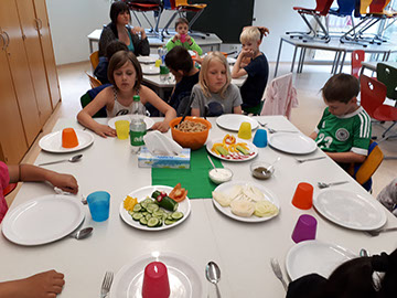 In der zweiten Woche kam dann doch noch der Herbst. Wir konnten jeden Morgen unterschiedliche Workshops zu unseren Themen besuchen, zum Beispiel: Sport, Kochen, Backen, Basteln, usw.