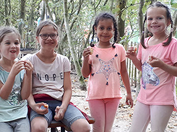 Beim Handwerken kamen dann auch die eingesammelten Eicheln zum Einsatz. Wir haben Futterhäuschen für Eichhörnchen gebaut, die jedes Kind mit nach Hause nehmen durfte.