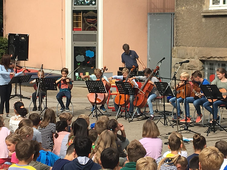 Dass alles so wie am Schnürchen lief, verdanken wir auch unseren vielen fleißigen Helfern: Dem Orchester, das so wunderbar spielte, den fleißigen Mamas und Papas, die die Stühle auf- und wieder abbauten, den lieben Menschen, die uns so prima bewirtet haben und all den anderen kleinen und großen Helfern. Vielen Dank!