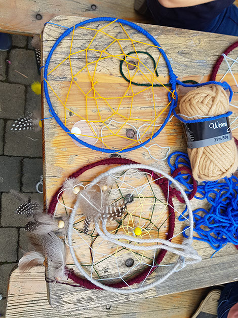 Nachmittags wurde das Wetter „nasser“ und wir konnten in den Gruppenräumen Brettspiele machen, Armbänder fädeln und knüpfen sowie Traumfänger basteln. Am letzten Abend war der Höhepunkt der Kinofilm „Madagaskar“ mit Popcorn und Süßigkeiten.