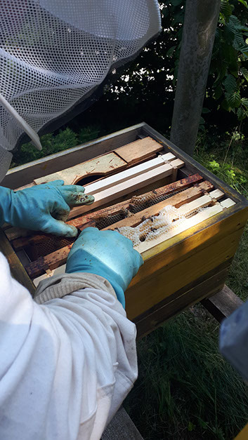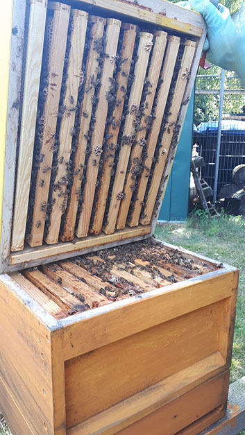 …und das nun schon mit zwei Parkschul-Völkern! Frau Hoffmann-Schneider und Herr Schütte haben am letzten Samstag gemeinsam mit dem „Bienenmentor“ Markus einen „Ableger“ erstellt, indem sie einige Bienen des ersten Volkes entnahmen, die dann ein neues Volk bilden werden.