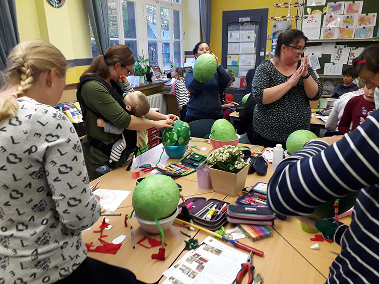 Am 29.10. bastelten alle Kinder aus Team Mitte mit ihren Eltern oder Großeltern ihre Laternen fertig. Fleißig wurde geschnitten und geklebt, wurden Holzperlen aufgefädelt und Biegeplüsch zu kleinen Blümchenantennen verarbeitet. Zwischendurch gab es immer wieder kleine Stärkungen am Buffet. Am Ende sind alle gemeinsam mit ihren leuchtenden Laternen singend durch den Stadtpark gezogen. Es war wieder ein sehr schöner Nachmittag.