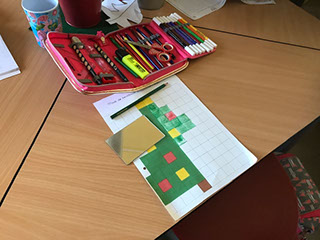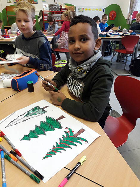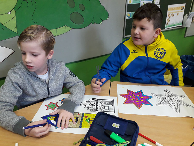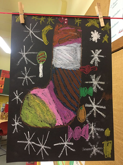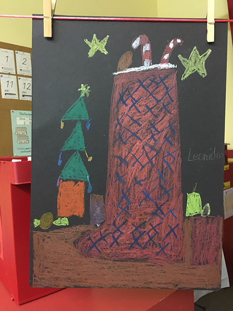 Der letzte musisch kreative Tag vor den Weihnachtsferien hatte die Symmetrie zum Thema! Es wurden symmetrische Weihnachtsmotive und Weihnachtskarten gestaltet. Die passenden Weihnachtslieder fehlten natürlich auch nicht!