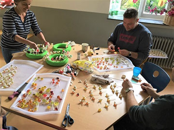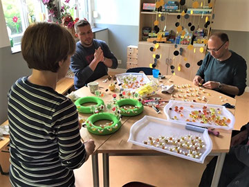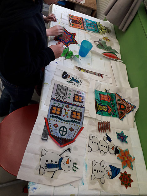 Am kreativen Tag von Team Mitte wurde dieses Mal unter anderem fleißig Fensterdekoration hergestellt, damit die Fenster für den lebendigen Adventskalender im Dezember wieder farbenfroh geschmückt sind. Außerdem wurde schon emsig an Weihnachtsgeschenken gearbeitet. Von dieser geheimen Aktion gibt es natürlich keine Fotos, damit die Überraschung am Weihnachtsabend perfekt wird.