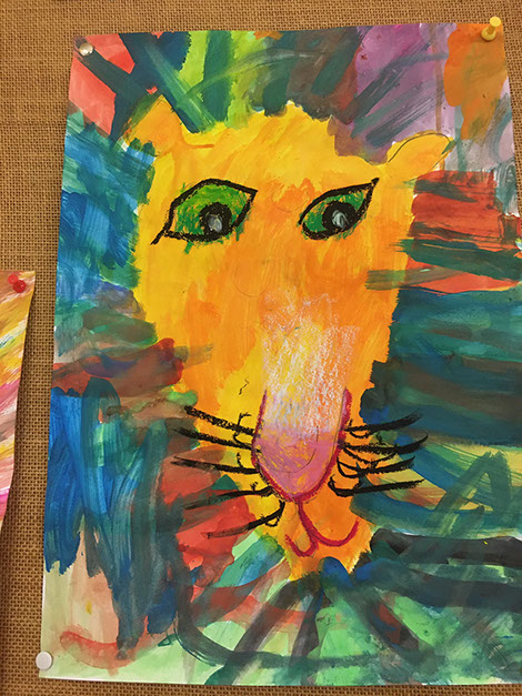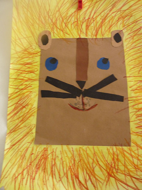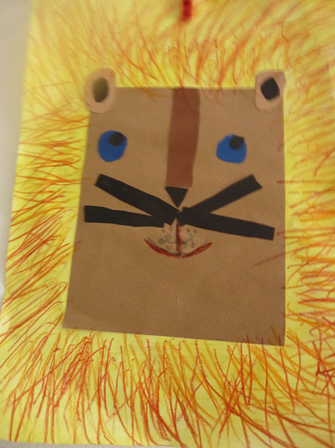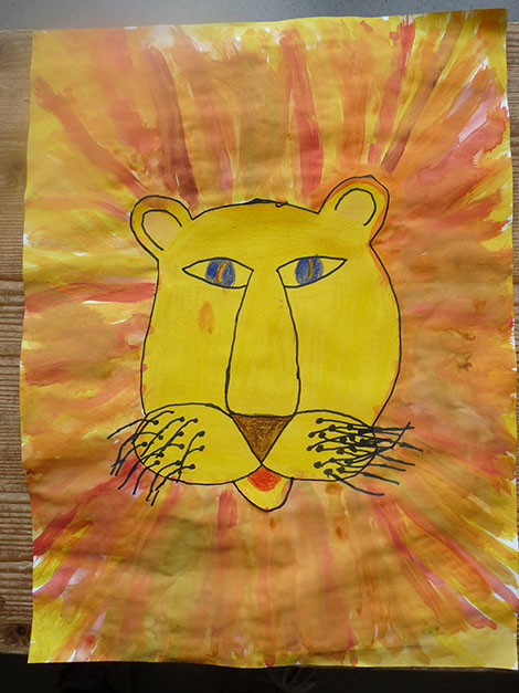 Die Kinder von Team Süd beschäftigen sich gerade mit dem Thema Zootiere und ihre Lebensräume. Klar, dass dann auch ein Löwe mit einer wilden Mähne dazu gehört. Diesen haben alle Kinder des Teams mit großer Begeisterung letzten Donnerstag gestaltet. Zuerst musste das Gesicht gezeichnet oder gebastelt werden, bevor schließlich die wilde Mähne mit Wachsmalern bzw. mit Wasserfarben den Löwen richtig wild machten. Dabei kam es natürlich auf die richtige Farbwahl an. Das ist den Hunden, Katzen, Fröschen und Füchsen aber richtig gut gelungen. Da kann der Zoobesuch bald kommen!