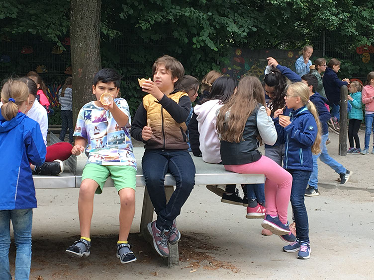 Team Süd war vom 22.05.-24.05.2019 auf Klassenfahrt in Essen-Werden. Die Frösche und Füchse sind zuerst, mit der 743 von der Haltestelle „Wülfrath Stadtmitte“, losgefahren. Währenddessen konnten die Hunde und Katzen noch etwas auf dem Schulhof spielen und haben ihre Reise dann etwas später angetreten. In Velbert am ZOB stiegen alle in den SB9 um, um weiter bis nach Essen-Werden zu fahren. Dort angekommen mussten wir erst einmal einen sehr steilen Berg hinaufsteigen, um unser endgültiges Ziel zu erreichen. Dieses Mal haben die Frösche und Füchse bereits spielen können, als ca. eine halbe Stunde später die Katzen und Hunde eintrafen. Kurz nachdem wir das Gelände schon mal etwas genauer unter die Lupe genommen hatten, gab es auch schon Mittagessen. Es gab Nudeln mit Tomatensoße oder man konnte auch Tortellini mit Käsesahnesoße essen. Anschließend sind alle in ihre Zimmer gegangen. Das Bettenbeziehen hatte einigen Kindern Schwierigkeiten bereitet, aber wir haben uns natürlich gegenseitig geholfen. Am Nachmittag gab es dann die ersten Bastelaktionen der Lehrer. Die kamen bei den Kindern sehr gut an, weil alles auf das Thema „Indianer“ abgestimmt war. So konnte man zum Beispiel Traumfänger oder Kopfschmuck basteln. Am 2. Tag gingen wir nachmittags alle auf einen riesigen Spielplatz auf der Brehminsel. Natürlich hatten alle einen riesigen Spaß und obendrein gab es auch noch ein kleines Picknick mit mitgebrachten Kuchen. Auf dem Rückweg machten wir bei Kikas Eiscafé noch einen kleinen Zwischenstopp und alle aßen ein leckeres Eis. Das war die passende Stärkung für den erneuten Kampf gegen den Berg. Wieder oben an der Jugendherberge angekommen durften wir noch etwas spielen, bis Herr Milotta mit uns gemeinsam „Cowboy und Indianer“ spielen wollte. Doch eigentlich war das gar kein richtiges Spiel, denn die Jungs haben sich für den Streich der Mädchen revanchiert. Zuerst sollten die Jungs alle Mädchen fangen. Als dann die Mädchen die Jungs fangen sollten, haben die sich im Frösche-gruppenraum versteckt und Süßigkeiten gegessen. Am Ende haben aber natürlich alle etwas abbekommen. Am nächsten Morgen packten wir schon früh unsere Koffer und machten die Zimmer sauber. Nach dem Frühstück traten wir dann wieder in zwei Gruppen aufgeteilt die Rückreise an. In der Schule angekommen erwarteten uns bereits unsere Eltern. Es war eine super tolle Klassenfahrt, aber wir waren auch alle froh wieder zu Hause zu sein.
