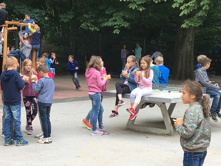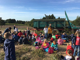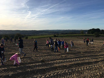 Team Mitte beschäftigt sich gerade mit dem Thema „Kartoffel“. Dazu wurden natürlich auch Kartoffelexperimente durchgeführt. Woraus besteht eigentlich eine Kartoffel? Warum hat eine Kartoffel eine Schale? Warum sind Kartoffeln wichtig für uns Menschen? So ging es in Kleingruppen ran an den Kartoffelschäler, an die Reibe und ans Untersuchen. Das hat richtig viel Spaß gemacht. Am Freitag ging es dann zu Bauer Düring Kartoffeln stoppeln. Die Rucksäcke waren so schnell mit den leckeren Kartoffeln gefüllt, dass vor dem Rückweg erstmal eine Stärkung angesagt war. Die Kinder konnten auch noch viele Mutterknollen finden. Das war richtig interessant. Lieben, lieben Dank an Familie Düring und an die lieben Mamas, die uns begleitet haben. Das war ein suuuupiiii Vormittag. Pünktlich zum Singen des Climate Songs waren wir an der Schule zurück. Und am Wochenende gibt es in 100 Familien leckere Kartoffelgerichte mit Wülfrather Kartoffeln.