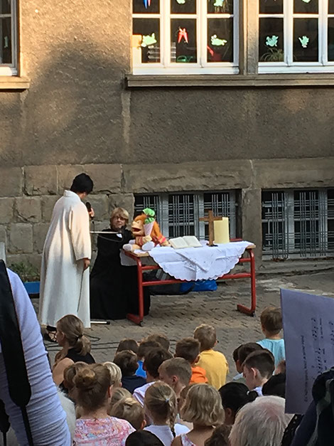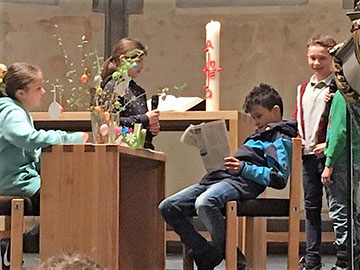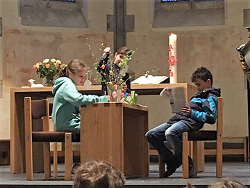 Der Ostergottesdienst wurde wieder von vielen Kindern der Parkschule mit gestaltet! Das Anspiel führte in bekannte Osterbräuche ein und weckte viel Vorfreude auf die bevorstehende Osterzeit. Die mitreißende musikalische Begleitung von Thomas Gerhold animierte alle dazu, kräftig mitzusingen! Vielen Dank dafür!