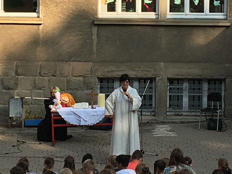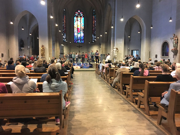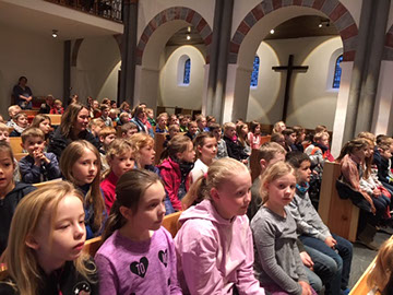 Am Donnerstag, den 07.11.2019, feierte die Parkschule einen ökumenischen Gottesdienst zum Thema „Sankt Martin“ in der katholischen Kirche St. Joseph. Auch zahlreiche Eltern, Großeltern und andere Verwandte waren der Einladung gefolgt. Für einen stimmungsvollen Einstieg sorgten dabei die Erstklässler mit ihren selbstgebastelten Laternen. Die Martinsgeschichte war aus Sicht der Laterne zu hören und Fürbitten und Überlegungen dazu, wie auch wir heute „wie Sankt Martin teilen“ können, rundeten den Gottesdienst ab.