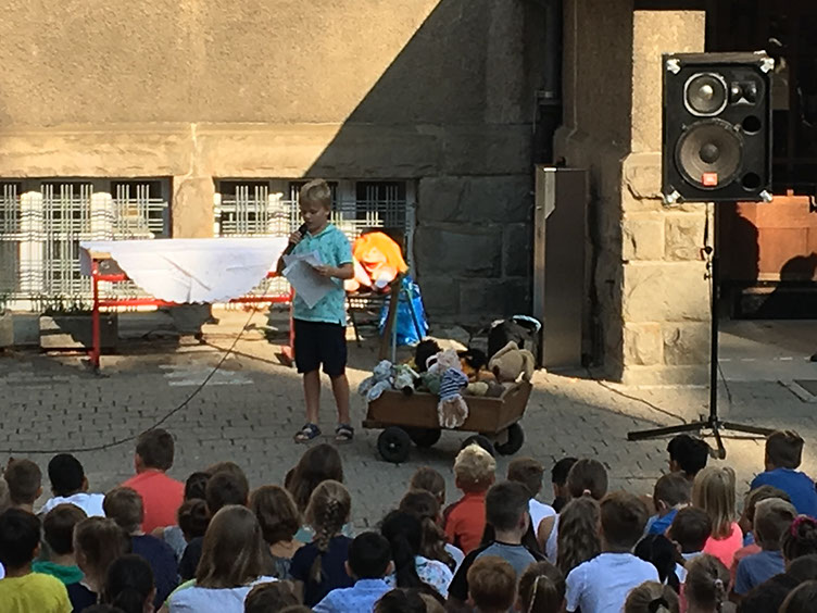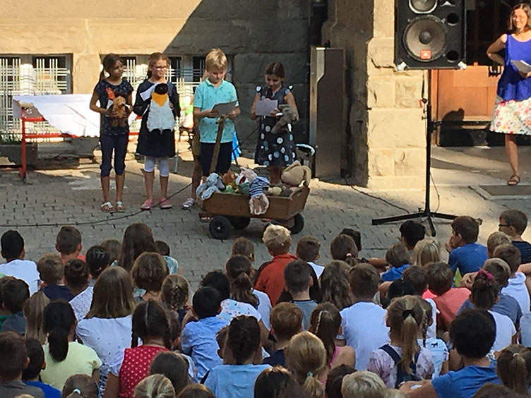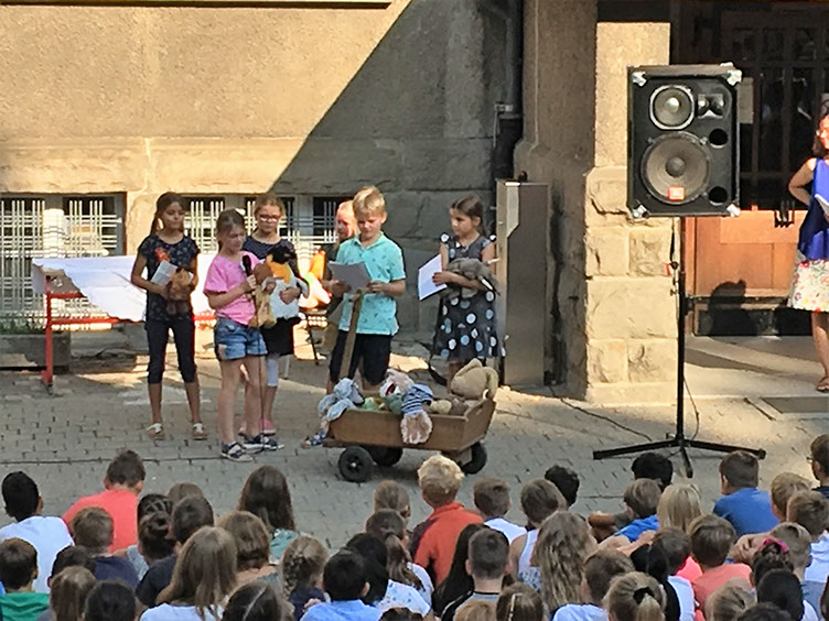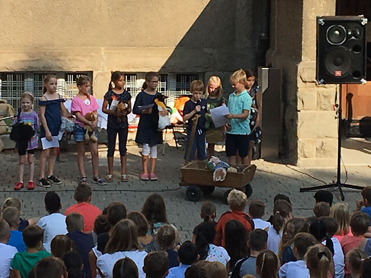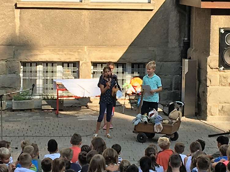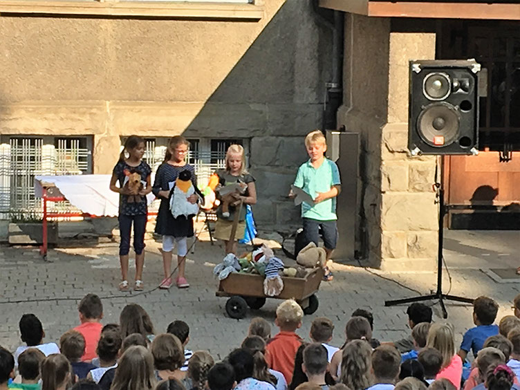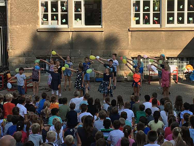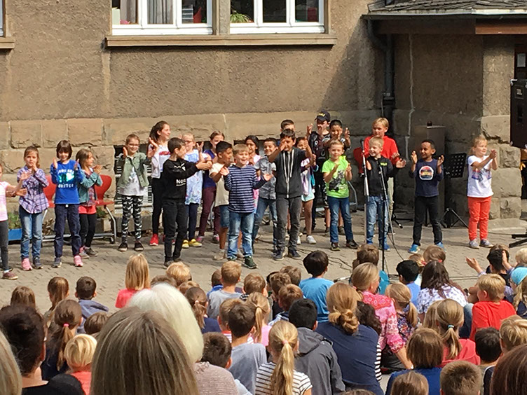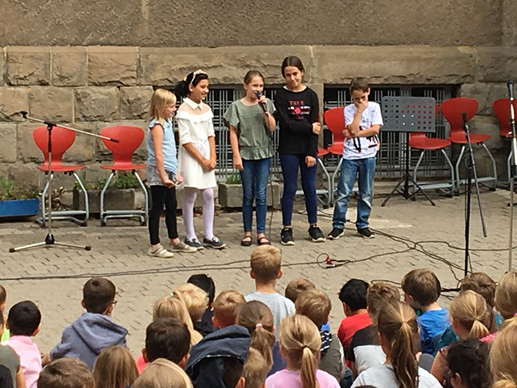 Zwischen den Auftritten der Teams sorgten die Flöten-AG, die Musik-AG und die Theater-AG für weitere Abwechslung und zeigten, was sie seit den Sommerferien so fleißig eingeübt hatten.