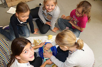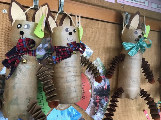 In den Herbstferien haben wir an unseren Tieren für die Räume in der alten Hauptschule gearbeitet und einige sind sogar fertig geworden! Wir waren viel draußen und haben tolle Mandalas aus den Naturmaterialien gemacht. Wir haben außerdem gebacken und gekocht. Auch die Bastelfans sind auf ihre Kosten gekommen, es sind kleine Pommelmonster und tolle Türkränze entstanden. Wir hatten jede Menge Spaß und Freude.