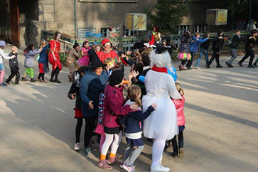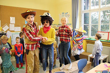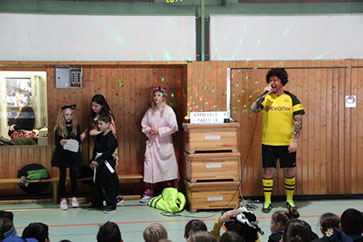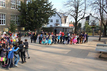 Heute stieg die große Karnevalsparty in unserer Schule! Die Musik schallte aus jedem Klassenraum und empfing Feen, Zauberer, Polizisten, Piraten, Indianer und sooo viele toll verkleidete Kinder. Ihr saht einfach spitze aus! Es wurde in allen Klassen gefeiert, getanzt, gespielt und gebastelt und natürlich haben wir lecker gefrühstückt. Mit der traditionellen Polonaise ging es nach zwei Stunden quer durchs Gebäude und über den Schulhof. In der Sporthalle wurde ebenfalls getanzt, gespielt und die Theater -AG hat uns mit kurzen Witzen unterhalten. Helau! Wir wünschen euch allen noch eine närrische Zeit. Ihr könnt super feiern! Das habt ihr uns mal wieder heute gezeigt. Wir sehen uns alle am Mittwoch wieder!