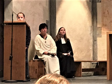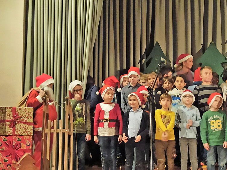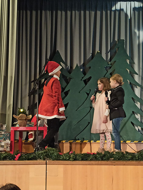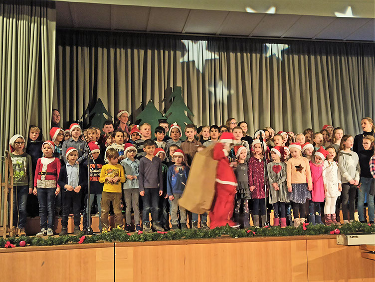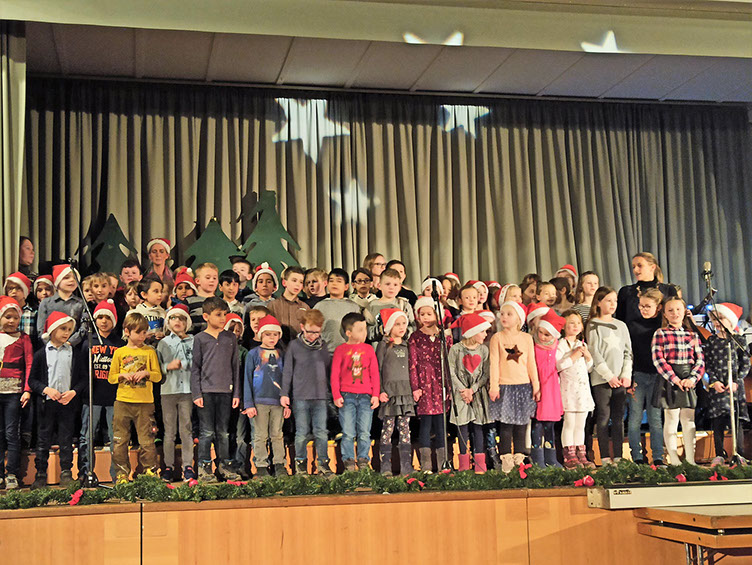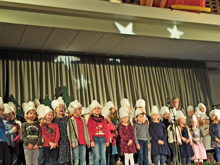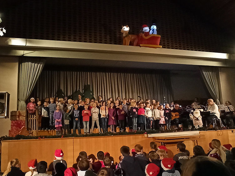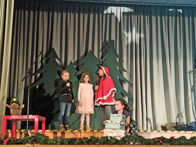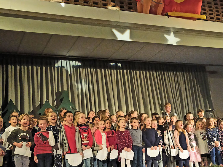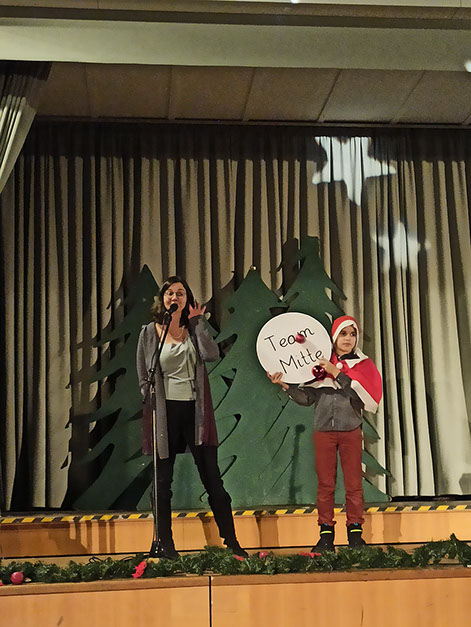 Jedes Team hatte zwei Lieder und eine „Aktion“ vorbereitet. So stimmte uns Team Süd mit einem Lichtertanz weihnachtlich ein, Team Mitte brachte uns mit einem englischen Theaterstück zum Lachen und Team Nord ließ uns mit seinem Keks-Rap an all die weihnachtlichen Leckereien denken - ich glaube noch nie haben wir das Wort „Schokolade“ so oft hintereinander gehört. Auch die ausgewählten Lieder boten eine breite Palette von Altbekanntem bis hin zu neu Umgedichtetem.