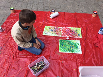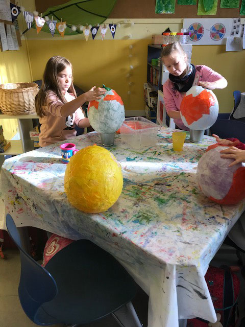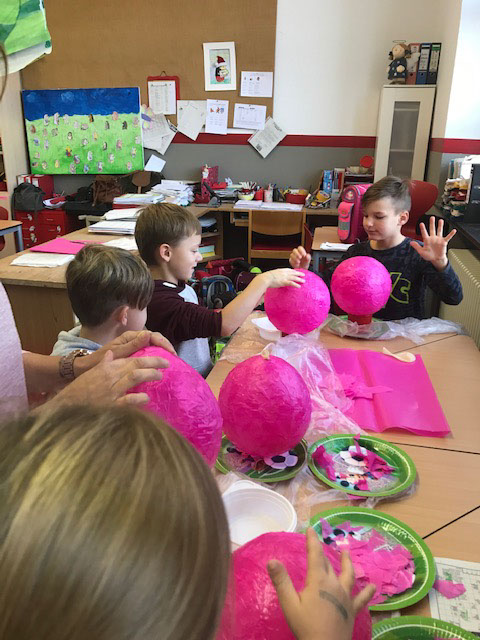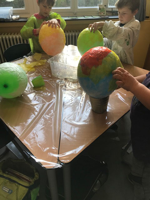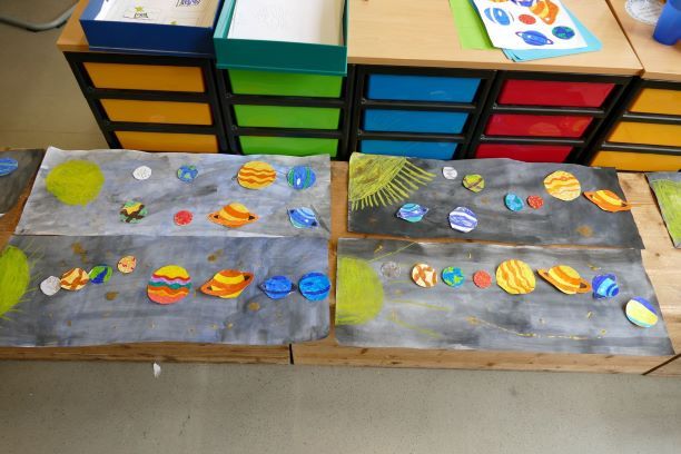 Merkur, Venus, Erde, Mars, Jupiter, Saturn, Uranus und Neptun spielten am kreativen Tag im Team Süd die Hauptrollen. Erst wurde der Weltraum mit schwarz und dunkelblau grundiert und nach und nach kamen die farbenfrohen Planeten hinzu. Abgerundet wurde das Kunstwerk mit der Sonne und Sternenstaub. Alle Kinder hatten viel Spaß und einige Planeten wundern sich über ihren ungewöhnlichen Farbanstrich.
