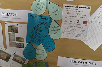 Das Team Mitte hat zu Beginn des Schuljahres das Buch „Das kleine WIR“ gelesen und dazu gemeinsam Klassenregeln und Wohlfühlworte gesammelt. Natürlich sind wir auch ganz kreativ geworden und haben eine Klassen-WIR gemeinsam gestaltet. Ganz schön toll sind sie geworden. Die Kinder haben sich auch gegenseitig ein WIR mit netten Worten geschenkt oder sich ein eigenes WIR ausgedacht. Das war ein toller Start und die neuen Erstklässler sind schon mitten in unserer Gemeinschaft.