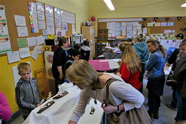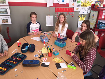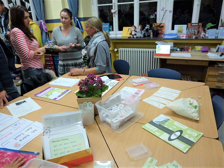 bekamen Gelegenheit, sich Arbeitsmaterialien der verschiedenen Schulfächer